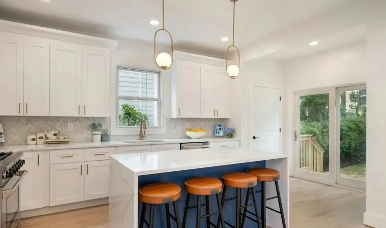- Scope: Cabinet refacing/repainting, quartz/granite tops, backsplash, lighting layers, fixture swaps, flooring, appliance upgrades.