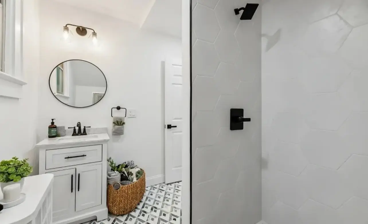 - Scope: New vanity/top/mirror, retile surround, LVP/porcelain floor, lighting upgrade, new toilet/fixtures, improved ventilation.